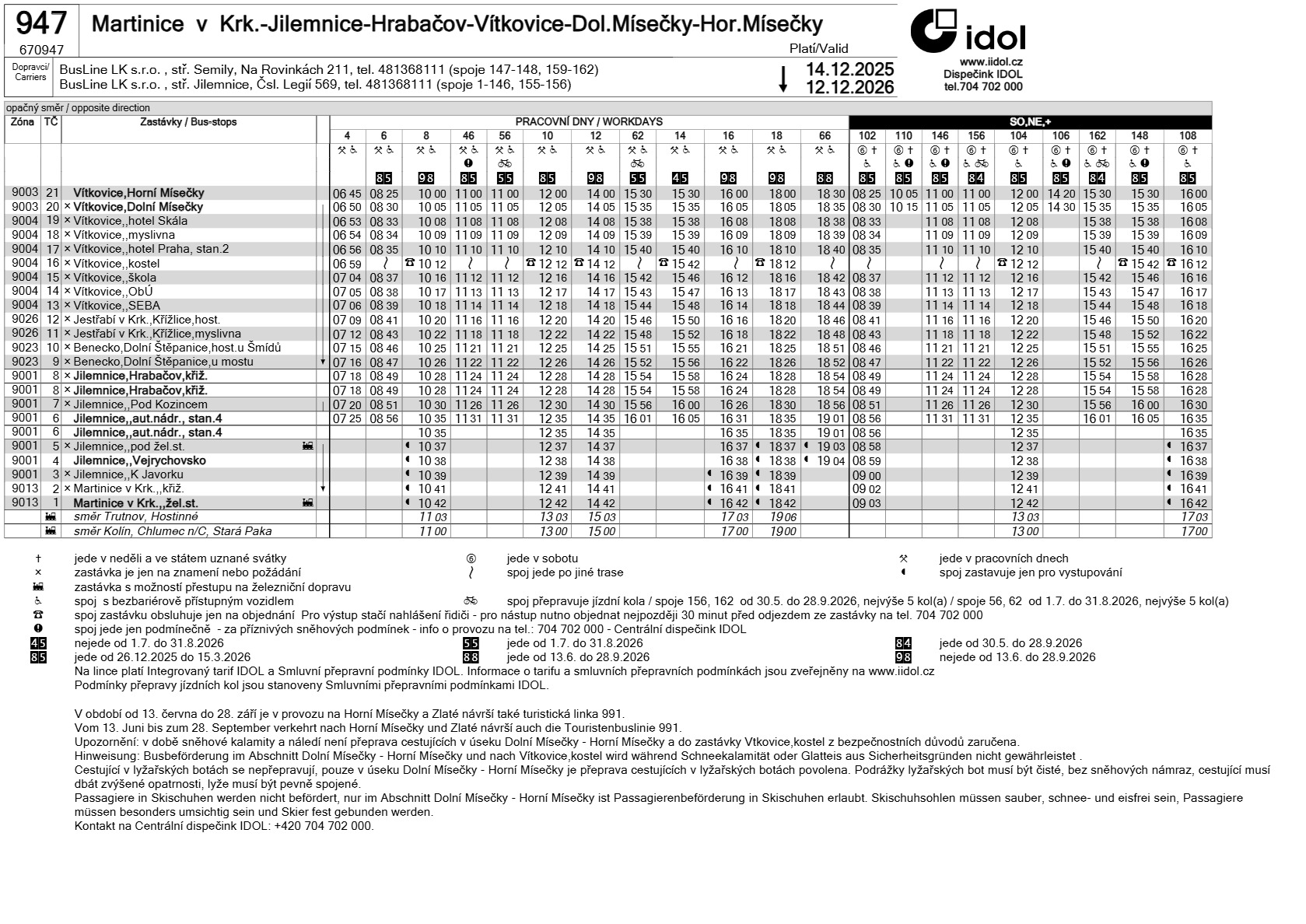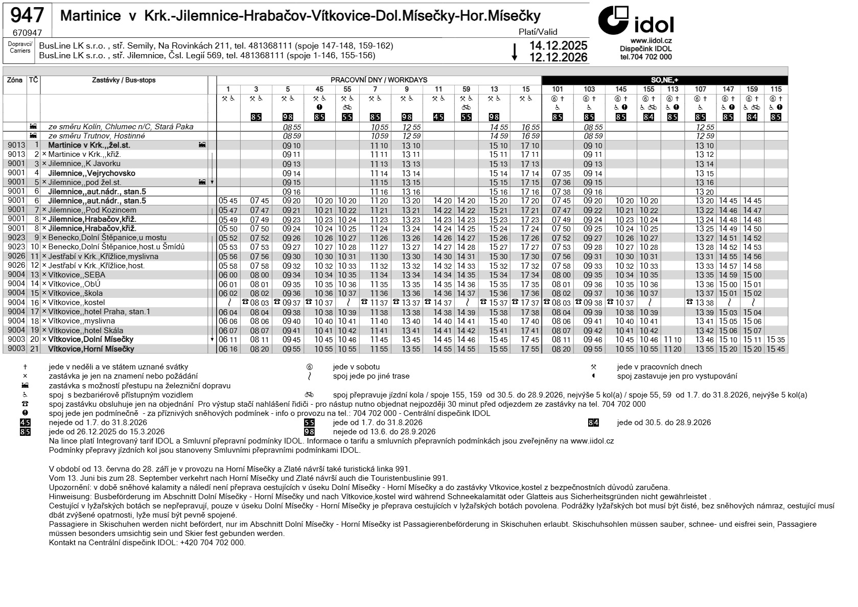 FROM 30.3. TO 29.4.2026 THE PUBLIC TRANSPORT TIMETABLE IS IN VALID.