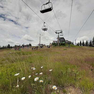 od horní stanice lanovky na Medvědín po modré na Horní Mísečky